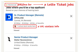 LinkedIn fails to solve job seekers' core problem — find jobs where you have connections — and encourages wasting time on low-value activities.
